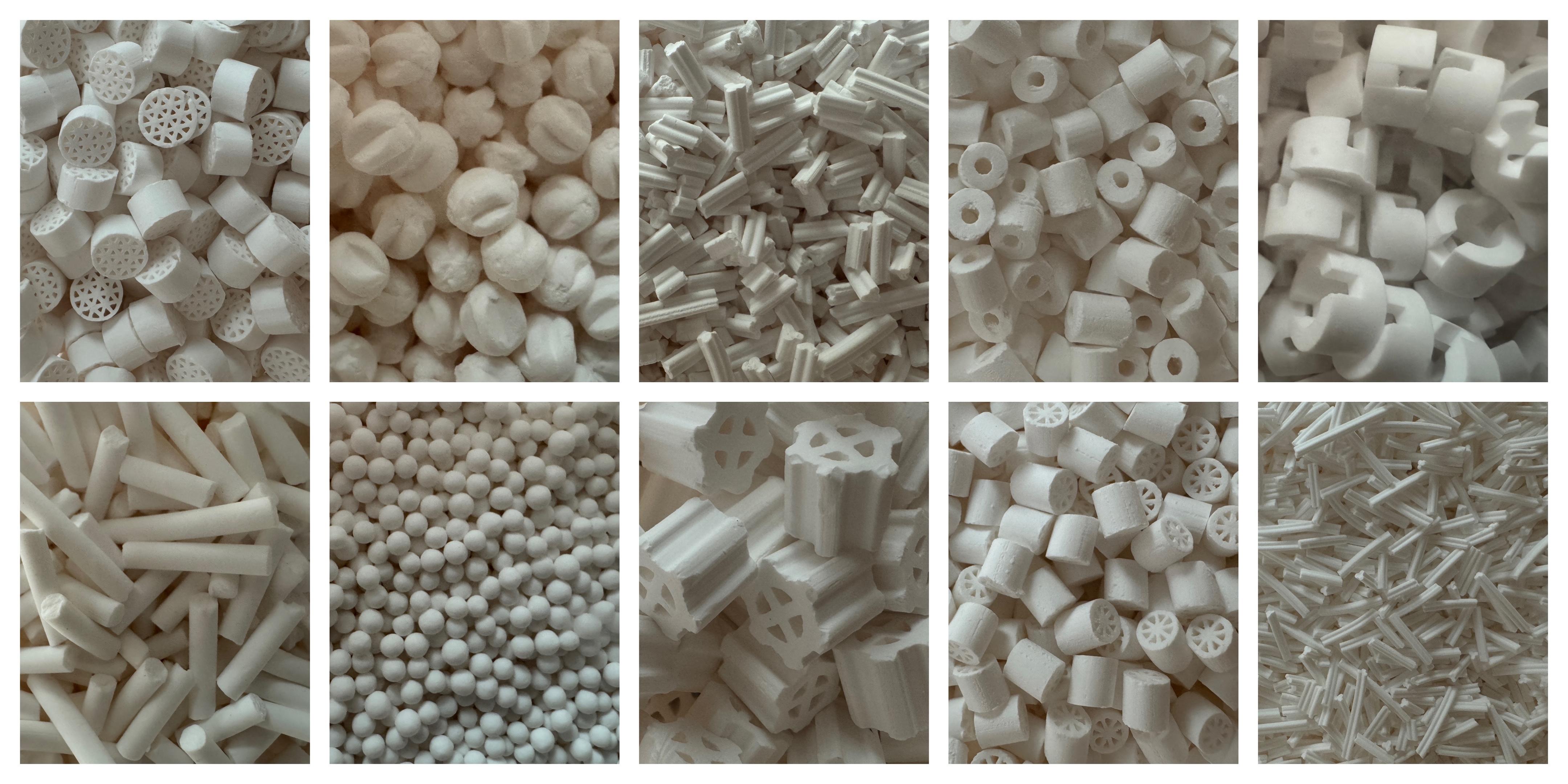 raw materials to supply extruded, sphere, ring and cylinder, cellular texture and